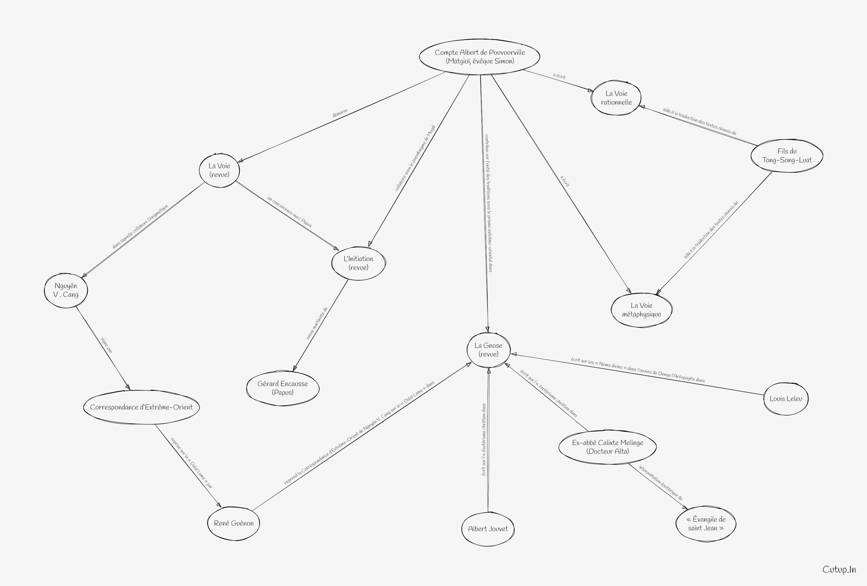 De retour en France, Pouvourville continue à partager et attiser ses sentiments anticléricaux et antireligieux des occultistes de son temps. Sous le pseudonyme de Mogd, il collabore d’abord à la revue martiniste de Papus L’Initiation où il prend la liberté de vanter les mérites de l’opium dont il se montrera friand toute sa vie, puis, à La Haute science consacrée « à la Tradition ésotérique et au symbolisme religieux ». Peu après, en concurrence avec Papus, il démarre La Voie (1904-1907). Parmi les collaborateurs, figure l’énigmatique Nguyên V. Cang qui signe une Correspondance d’Extrême-Orient dont le thème du « Dalaï Lama » sera repris par Guénon dans La Gnose ; en ce qui concerne la question de l’« ésotérisme chrétien », signalons l’apport d’Albert Jouvet et de l’ex-abbé Calixte Melinge connu sous le pseudonyme du Dr Alta, avec son « Évangile de saint Jean » également, les études de Louis Leleu sur les « Noms divins » dans l’œuvre de Denys l’Aréopagite. Pour Matgioï, ces nouvelles colonnes se veulent l’occasion de développer longuement, sous son aspect extrême-oriental, le thème de l’unité des diverses traditions. Sa collaboration s’amorce donc sur le thème de La tradition primordiale, tôt suivi d’un premier écrit de ses deux principaux ouvrages : La Voie métaphysique (1905) et La Voie rationnelle (1907). Chacornac rapporte que le fils du Tong-Song-Luat séjourna en France un certain temps pendant lequel il aida à la traduction des textes chinois contenus dans ces deux ouvrages, et de poursuivre :