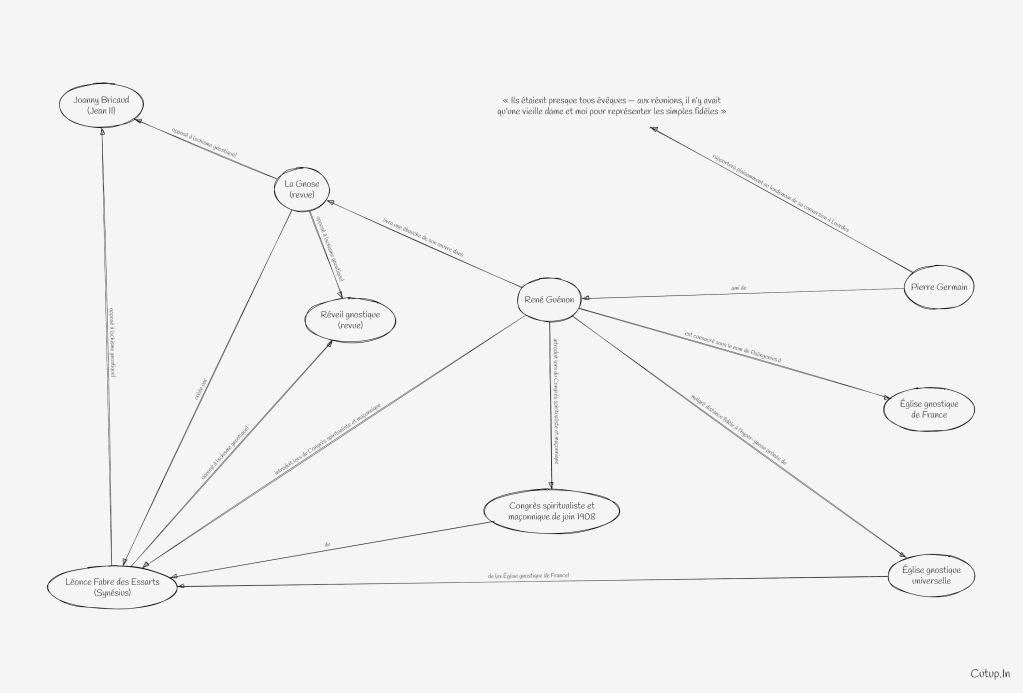 Néanmoins, cette affiliation gnostique permettra à Guénon de livrer une ébauche de son œuvre dans les colonnes de La Gnose, créée sur l’initiative de Fabre des Essarts, pour faire pendant au Réveil gnostique de Jean Bricaud. S’il est vrai que Guénon, pour des motifs de tactique et de vocation personnelle, marqua assez rapidement ses distances par rapport au groupement placé sous la direction de Fabre des Essarts, il n’en demeure pas moins qu’il continua à évoluer dans une ligne qui peut se réclamer à juste titre de l’hyper-gnose prônée par l’Église gnostique universelle de Synésius.