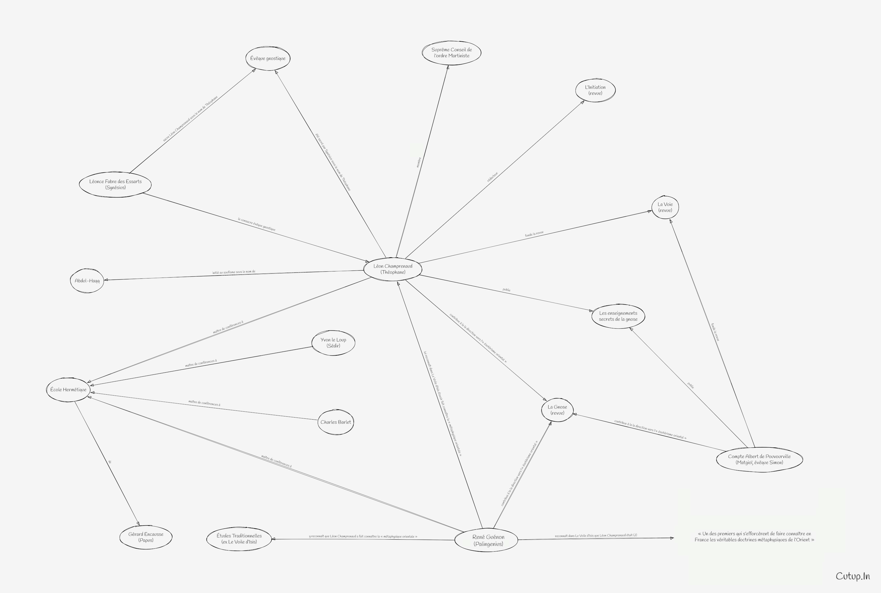Cette cinquième partie est tirée du chapitre Les « Maîtres » de René Guénon, extrait de l’ouvrage Ésotérisme et christianisme autour de René Guénon que nous avons choisi de présenter en sept articles. Cette thèse soutenue en 1981 par Marie-France James, docteur ès lettres, rassemble tant d’informations qu’il nous a paru évident de les schématiser.