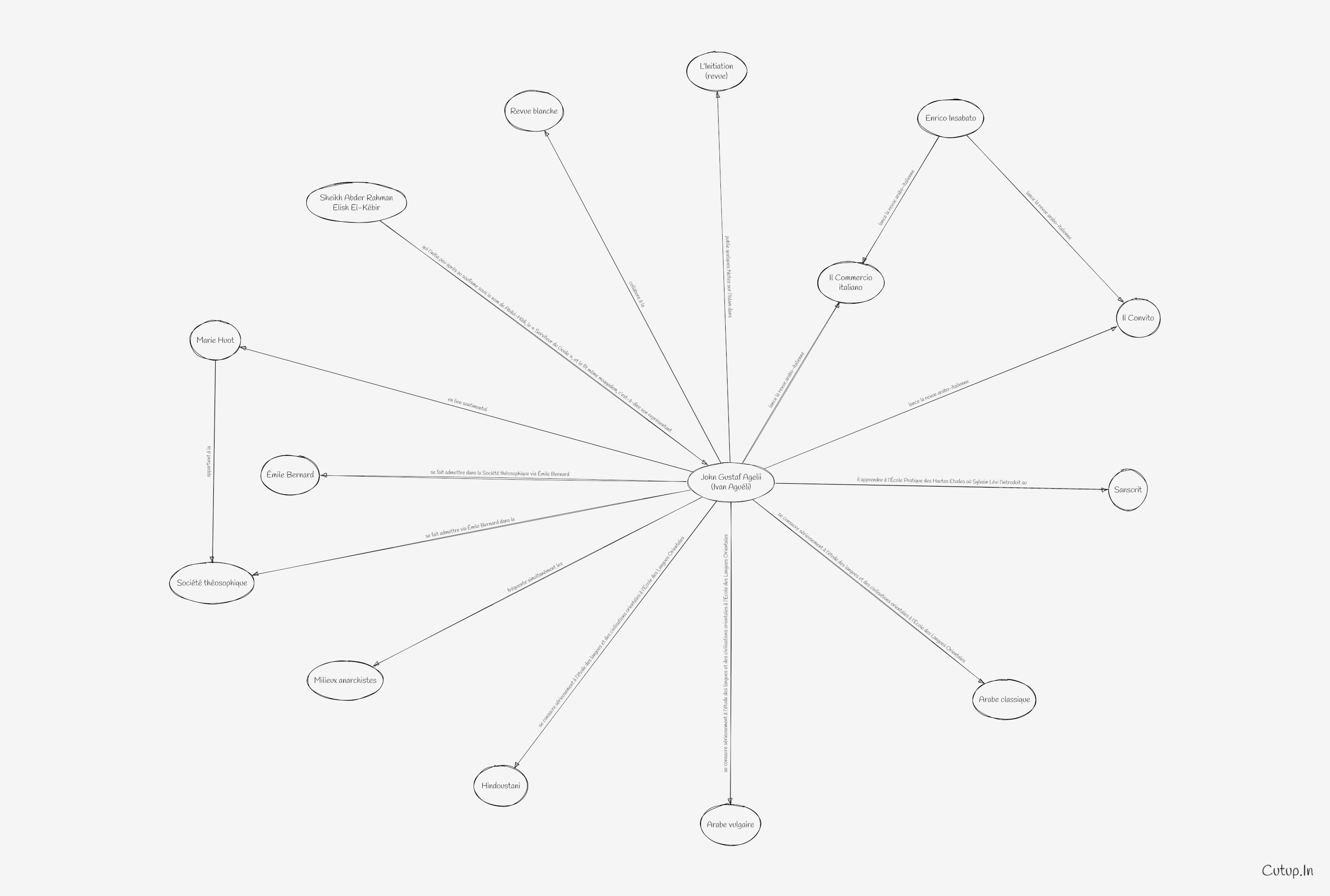 Peintre suédois originaire de la région de Stockholm (1869). Après des études scolaires non couronnées de succès, il effectue en 1890, un premier voyage à Paris. Il entre alors à l’atelier du peintre Émile Bernard et prend le nom d’artiste Ivan Aguéli. Patronné par le peintre Bernard, il se fait admettre dans la société théosophique. Simultanément, il fréquente les milieux anarchistes. Il retourne à Stockholm puis revient à Paris à la fin de 1892 ; des liens se créent entre lui et la jeune poétesse socialiste et théosophe Marie Huot. Emprisonné à Mazas pendant plusieurs mois pour avoir donné asile à un jeune anarchiste recherché par la police, il met à profit sa détention pour étudier les langues hébraïque et arabe, de même que le malais. Il se découvre alors « une faculté incroyable de s’assimiler de nouvelles langues, de pénétrer et d’analyser leurs architectures » 43. Sur la liste de ses projets de lecture figurent la Bible en hébreu, Fabre d’Olivet, l’Évangile de saint Jean en arabe, Denys l’Aréopagite, Villiers de l’Isle Adam etc., sans oublier celui qui l’influença fortement, son compatriote, le théosophe suédois Swedenborg.