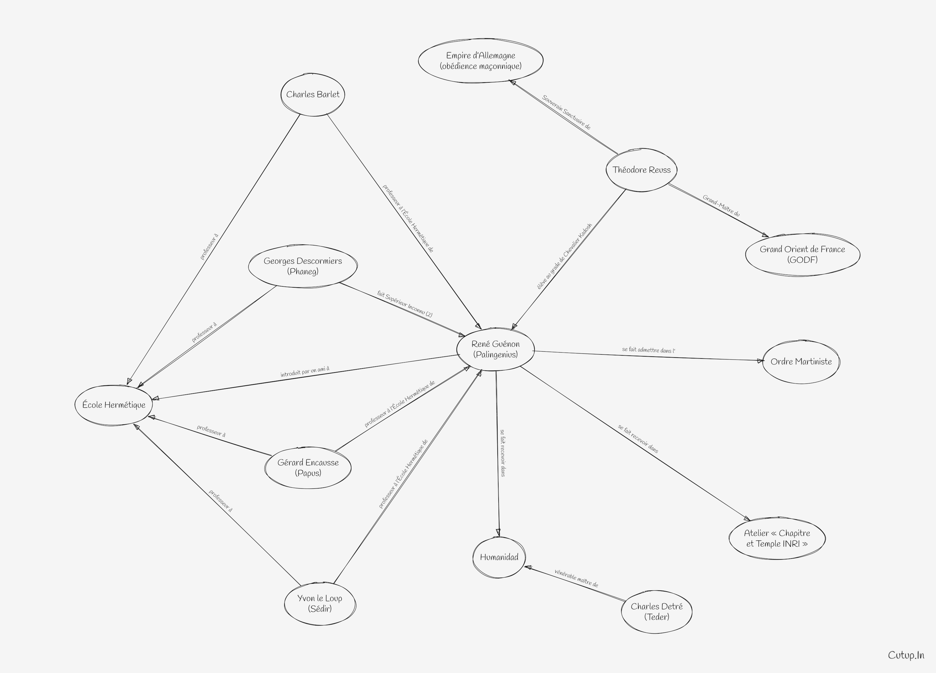 Or… au début de 1908, lors même qu’un groupe de l’ordre Martiniste, réuni dans un hôtel au 17 rue des Canettes, s’exerçait à obtenir certaines communications spirite par « écriture directe », on reçut l’ordre d’y amener Guénon. Par la suite, tantôt rue des Canettes, tantôt rue Saint-Louis en l’Île, l’ « entité » enjoignit au groupe de fonder un « Ordre du Temple » dont Guénon serait le chef.